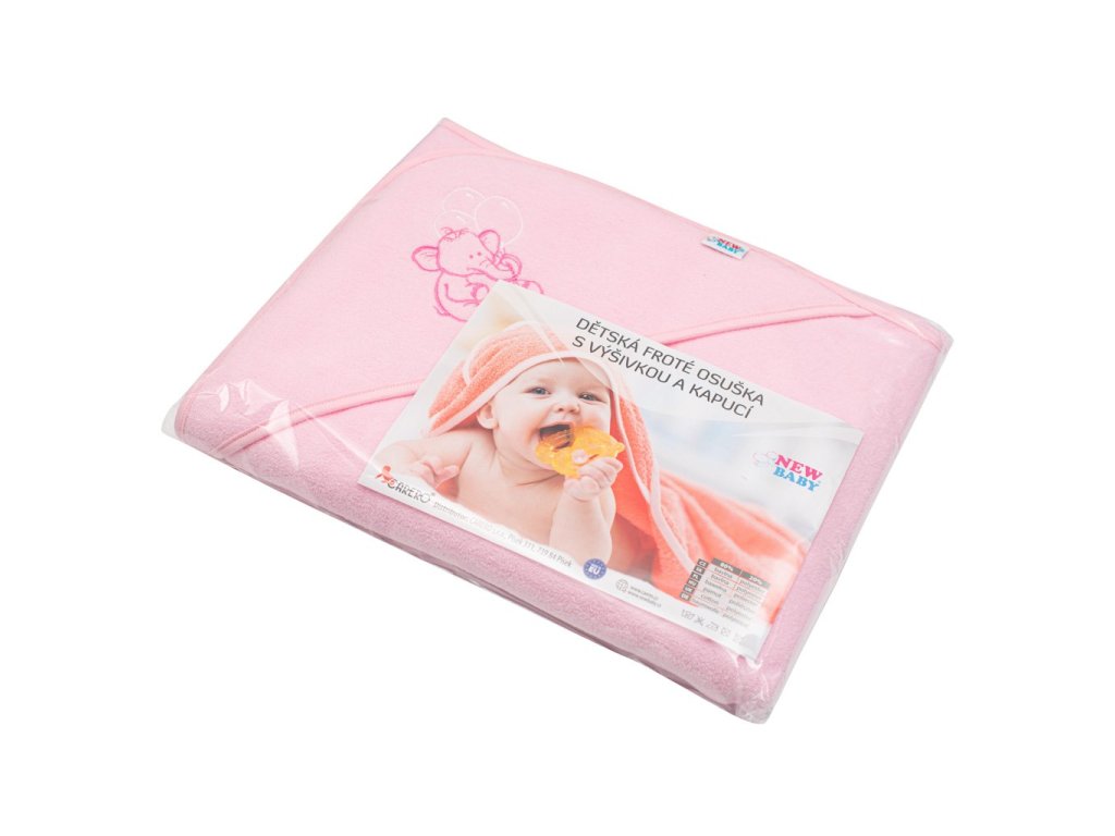 Krásna detská froté osuška New Baby je vyrobená z mäkkého, kvalitného a veľmi savého materiálu a preto je ideálna pre bábätká i staršie deti. Osuška krásne zahreje po kúpeli a praktická kapucňa chráni hlavičku dieťatka pred nepríjemným chladom. Osuška dokonale absorbuje vlhkosť, pričom veľmi rýchlo schne. Zdobí ju veselý obrázok zvieratka. P> Zloženie: 80% bavlna, 20% polyester
