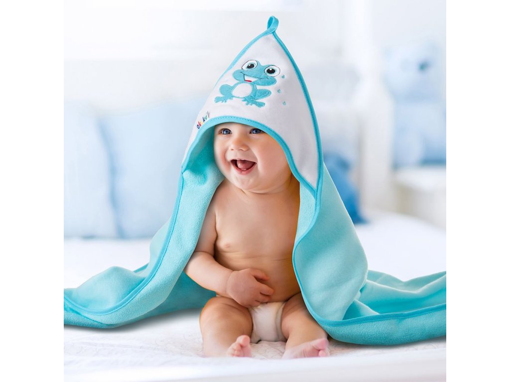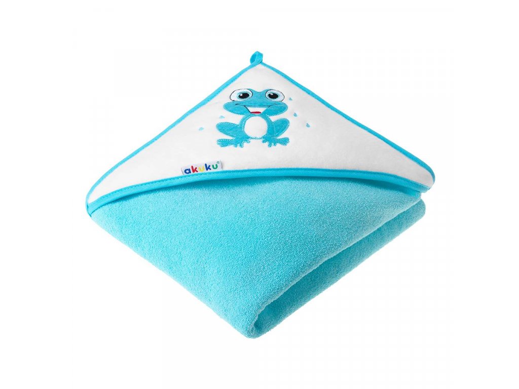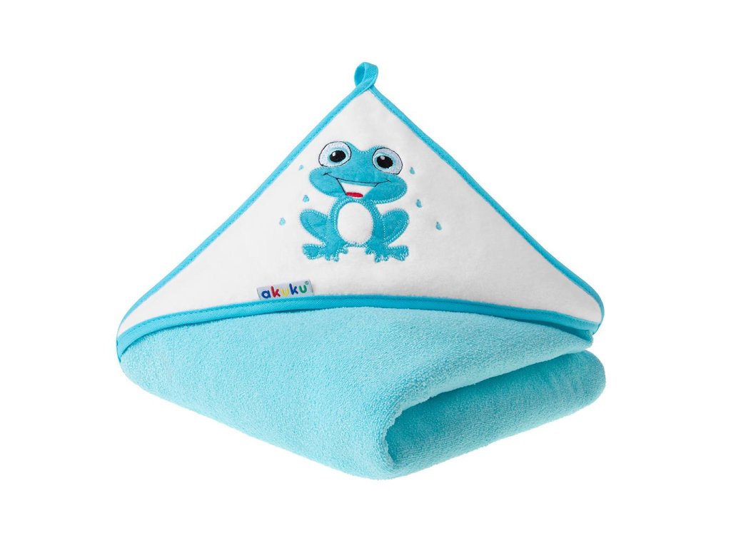 Krásna detská osuška Akuku s obrázkom a kapucňou. Osuška je vyrobená z príjemného a mäkkého materiálu, ideálna pre bábätká. Vnútorná strana osušky je bavlnená, vonkajšia fleecová pre lepšie zahriatie. Rozmery: cca 100x100 cm. Zloženie: 100% bavlna.Dodatočné parametre