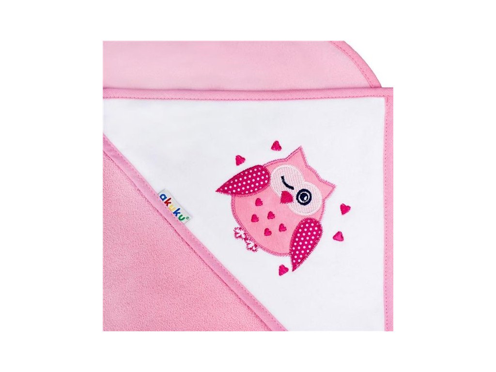 Detská osuška Akuku s obrázkom a kapucňou. Osuška je vyrobená z príjemného a mäkkého materiálu. Vnútorná strana osušky je bavlnená, vonkajšia fleecová. Rozmery: cca 80x80 cm. Zloženie: 100% bavlna.Dodatočné parametre