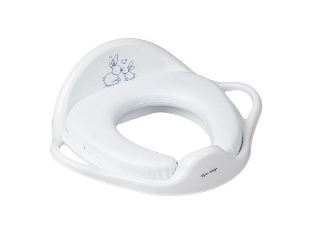 Detské farebné sedadlo na WC mäkké s obrázkom zajačika. Vyrobené z kvalitného plastového materiálu. Je ľahko umývateľné a vďaka svojmu tvaru zaručuje Vášmu dieťaťu bezpečie a pohodlie. Zvýšená predná časť zabraňuje úniku moču. Má plastové úchyty a sedacia časť je mäkká a potiahnutá PVC. Ideálne pre deti, ktoré sa učia samé chodiť na záchod. Sedí ku väčšine záchodových dosiek. Rozmery: cca 38x32 cm. Vhodné pre deti od 18 m, do 25 kg.Dodatočné parametre
