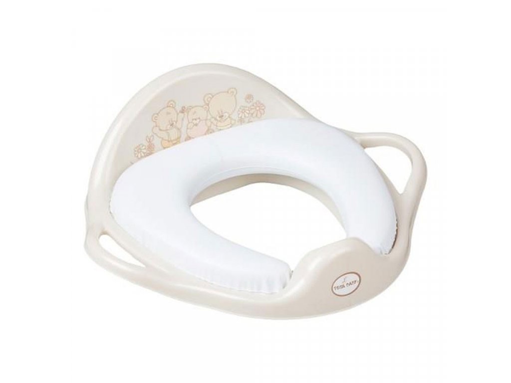 Detské farebné sedadlo na WC mäkké s obrázkom medvedíkov. Vyrobené z kvalitného plastového materiálu. Je ľahko umývateľné a vďaka svojmu tvaru zaručuje Vášmu dieťaťu bezpečie a pohodlie. Zvýšená predná časť zabraňuje úniku moču. Má plastové úchyty a sedacia časť je mäkká a potiahnutá PVC. Ideálne pre deti, ktoré sa učia samé chodiť na záchod. Sedí ku väčšine záchodových dosiek. Rozmery: cca 38x32 cm. Vhodné pre deti od 18 m, do 25 kg.Dodatočné parametre