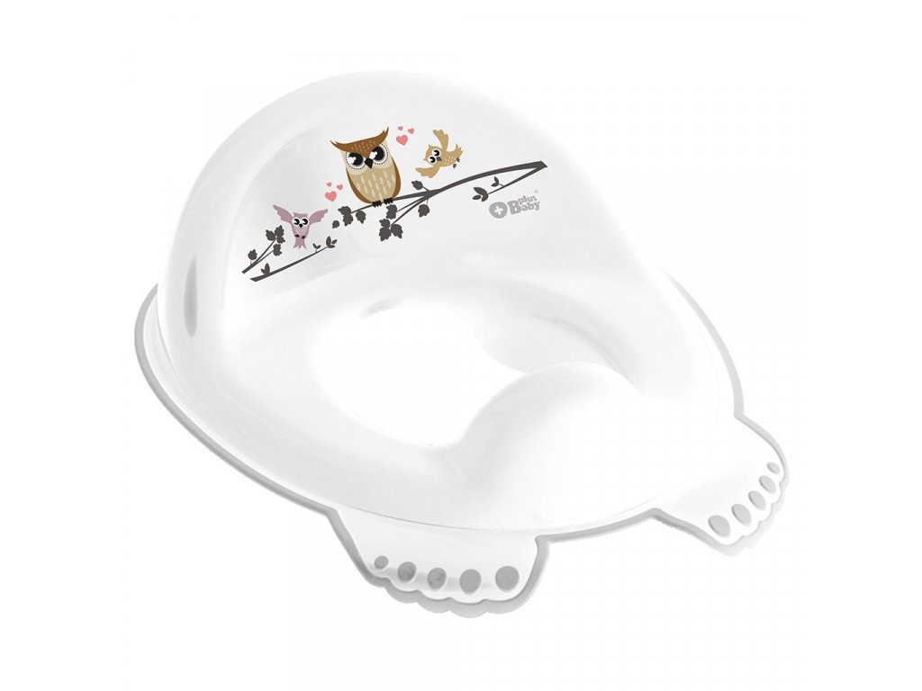 Detské sedadlo na WC s obrázkom sovy. Je vyrobené z kvalitného plastového materiálu. Je ľahko umývateľné a vďaka svojmu tvaru zaručuje Vášmu dieťaťu bezpečie a pohodlie. Zvýšená predná časť zabraňuje úniku moču. Sedí ku väčšine záchodových dosiek. Spodná strana má protišmykovú úpravu pre väčšie bezpečie Vášho dieťaťa. Rozmery: cca 38x32 cm.Dodatočné parametre