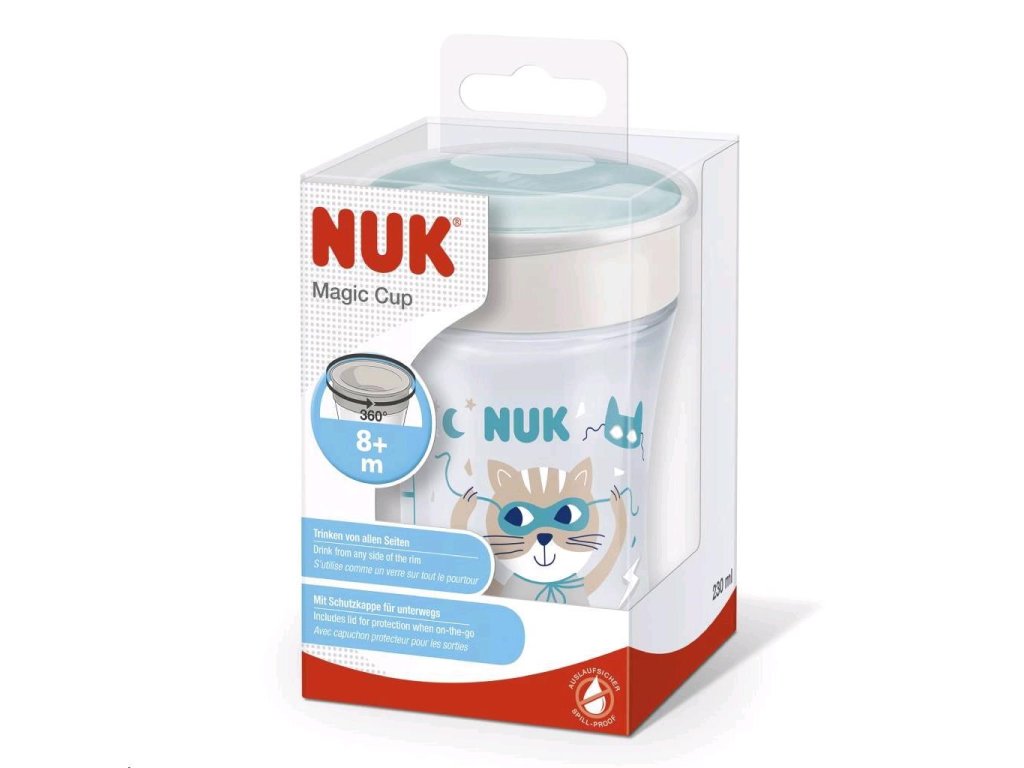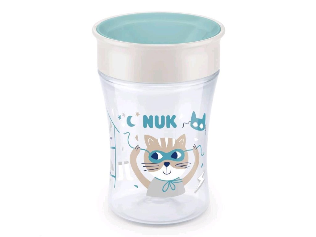 Detský hrnček Magic NUK 360 ° s viečkom. Revolučný uzáver umožňuje piť bez náustku či slamky z každej strany, vďaka čomu sa dieťa učí samo piť ako z normálneho hrnčeka. Neobsahuje BPA. Charakteristika:- pitie je možné zo všetkých strán vďaka 360 ° pitnému okraju