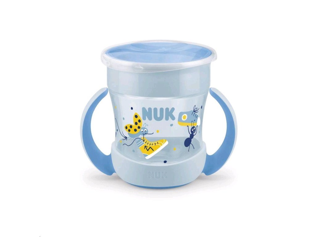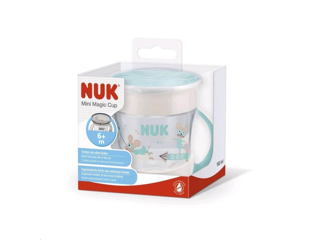 Detský hrnček Mini Magic NUK 360 ° s viečkom. Revolučný uzáver umožňuje piť bez náustku či slamky z každej strany, vďaka čomu sa dieťa učí samo piť ako z normálneho hrnčeka. Neobsahuje BPA. Charakteristika:- pitie je možné zo všetkých strán vďaka 360 ° pitnému okraju