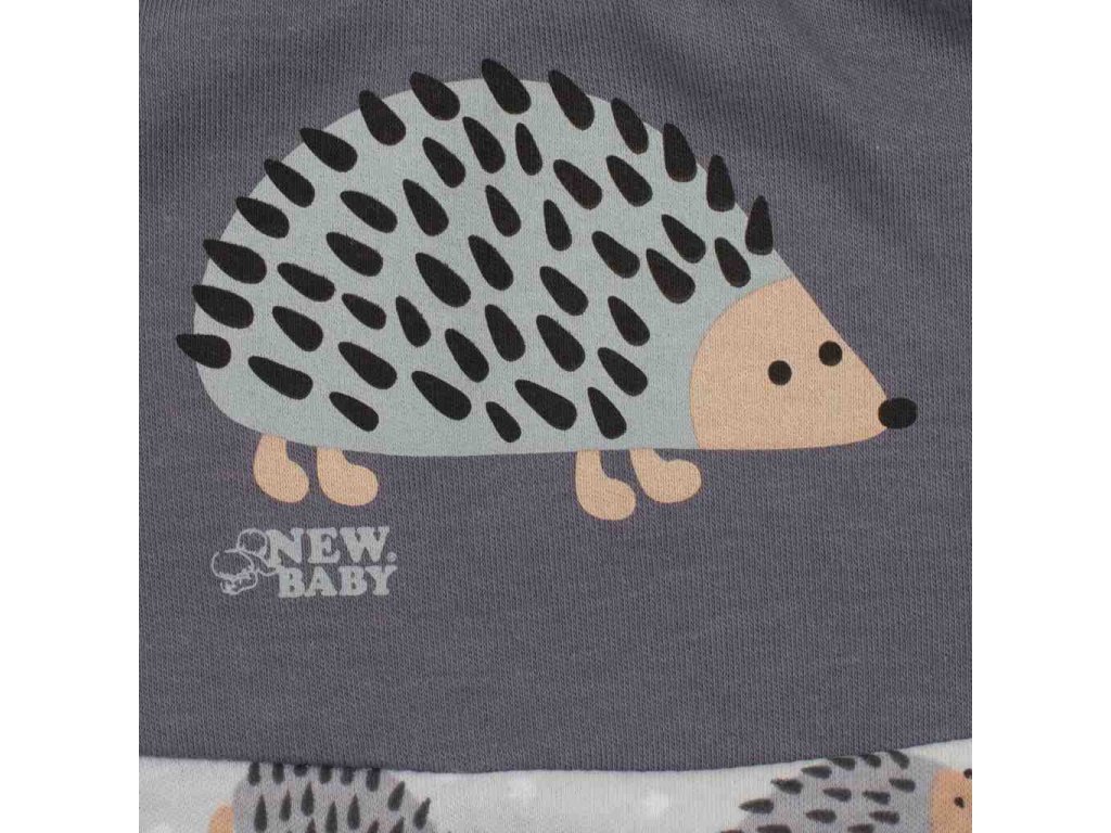 Bavlnená kojenecká mikinka New Baby Ježko pre bábätká. Mikinka má rukáky a spodnú časť potlačené malými ježkami. Vrchnú časť mikinky zdobí veľký obrázok roztomilého ježka a je ukončená širokým lemom. Praktické zapínanie na ramienku na cvočky. Nápaditá a cool, presne taká je naša kolekcia New Baby Ježko. Zloženie: 100% bavlna.