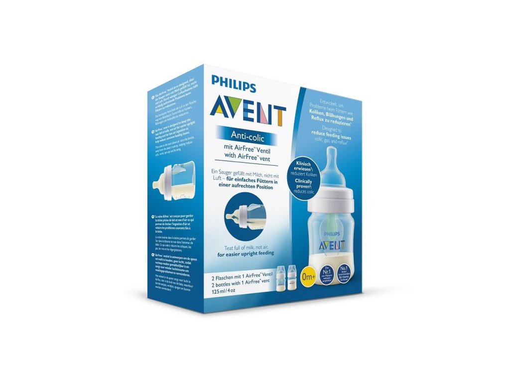 Dojčenská fľaša Anti-Colic s ventilom Airfree 125 ml. V balení 2ks. Charakteristika:Ventil Airfree