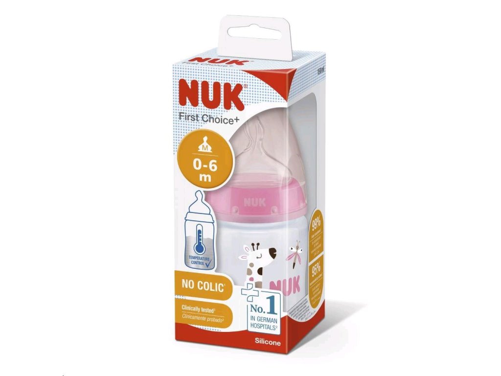 Dojčenská fľaša NUK First Choice s kontrolou teploty. Špeciálny tvar typický pre cumlík NUK s ortodontickým antikolikový cumlíkom je modelovaný podľa materskej bradavky pri dojčení. Dojčenské fľaše sú teraz vybavené novou NUK kontrolkou teploty a pomáhajú tak zabrániť tomu, aby vaše dieťa pilo príliš horúci príkrm. Kontrolka vyzerá ako teplomer, je umiestnená medzi ryskami a teplota obsahu fľaše zmení jej farbu. Ak je príkrm príliš horúci, modrá kontrolka sa zmení na bielu. Vyrobená z vysoko kvalitného nerozbitného plastu polypropylénu a neobsahuje BPA (Bisfenol A). Obsah fľaše 150 ml. Vhodná pre deti od 0-6 mesiacov M (stredne veľký otvor = pre detskú výživu). Klinicky testované.Charekteristika: