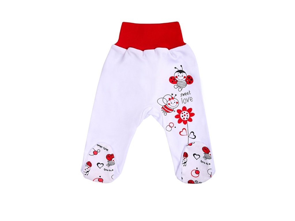Dojčenské polodupačky New Baby Lienka pre všetky malé deti. Polodupačky sú bielo-červené s obrázkom lienok a červeným pásom. Rozmery: obvod okolo pásu cca 33 cm, obvod okolo bokov cca 48 cm, celková dĺžka cca 40 cm, dĺžka od rozkroku cca 20 cm. Zloženie: 100% bavlna.