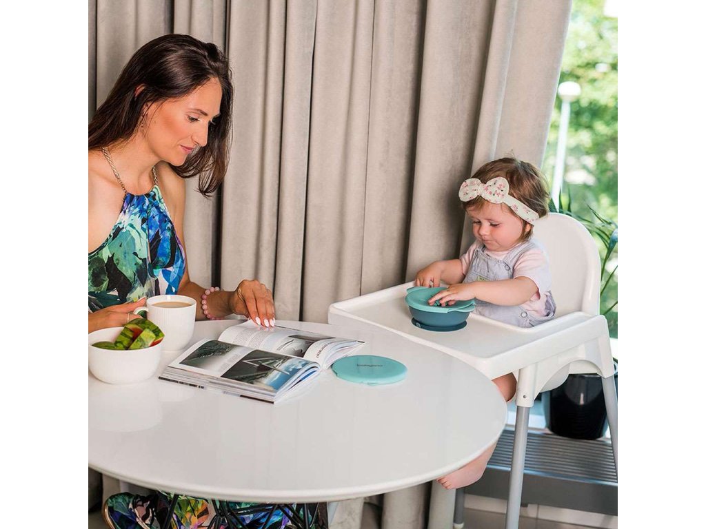 Miska je ideálna na rozšírenie jedálnička vášho bábätka. Dobre poslúži aj pri učení sa samostatne jesť. Prísavka zabraňuje skĺznutiu riadu po stole a chráni pred vysypaním obsahu. Priložené viečko na desiatu rozvíja zvedavosť a stimuluje hmat. Silikónová prísavka zabraňuje kĺzaniu šálky po stole, zabraňuje rozliatiu a pomáha udržiavať poriadok. Vyrobené z mäkkého materiálu, povzbudzuje dieťa k hľadaniu obľúbenej desiaty, podporuje rozvoj hmatu a zároveň chráni pred poliatím. Po stranách misky sú dve pohodlné madlá, ktoré uľahčujú prenášanie. Druhé viečko umožňuje odložiť jedlo a pritom ho zachovať čerstvé a zabrániť prenikaniu pachov do chladničky.