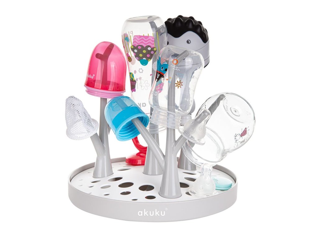 Sušička, odkvapkávač na fľaše a príslušenstvo je ideálnym pomocníkom na doma i na cestách. Špeciálny tvar spodnej časti bol navrhnutý tak, aby odvádzal vodu do jedného miesta a sušička nemusela byť umiestnená na drese. Je vhodná pre všetky typy fliaš a cumlíkov. Je ľahko zložiteľná, čím zaberá málo miesta a možno ju umývať v umývačke.